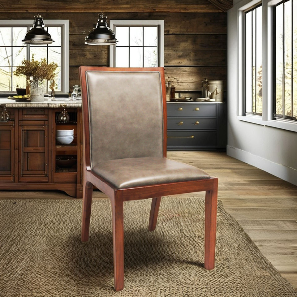 Silla de comedor de madera de nogal macizo con respaldo alto Tapicería de cuero de vaca italiano Madera dura duradera con diseño rústico Estilo de granja
