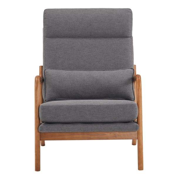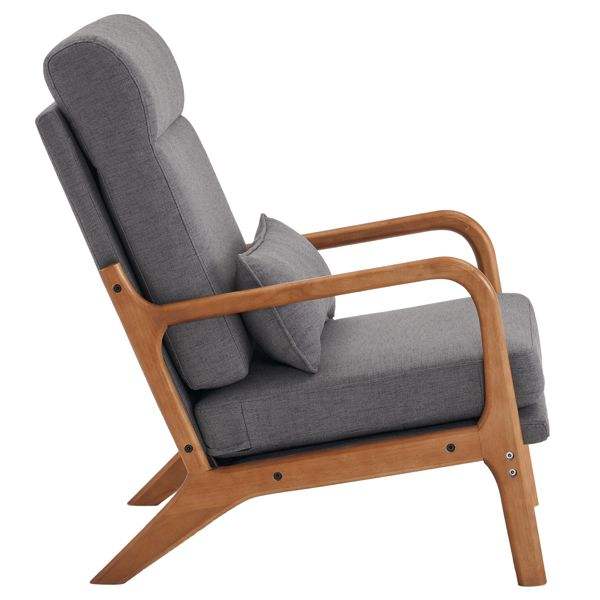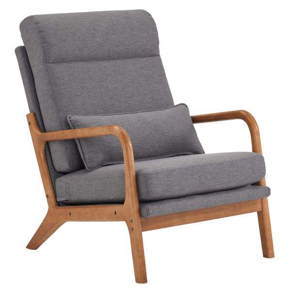 Silla de Ocio para Interiores con Respaldo Alto, Brazos y Respaldo de Madera Maciza, Estructura de Hierro, Tapizada en Lino, Color Gris Oscuro, para Sala de Estar