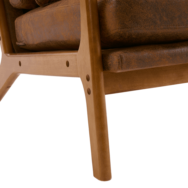 Silla de Ocio para Interiores con Respaldo Alto y Reposabrazos de Madera Maciza, Color Naranja, con Estructura de Hierro y Tela Bronceada para Sala de Estar