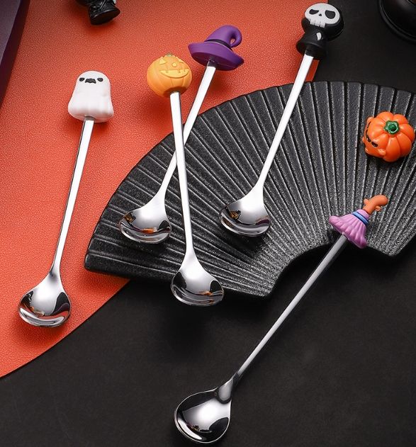 Juego de cucharas de acero inoxidable de alta belleza, vajilla desechable con patrón de animales para regalos de Halloween, cuchara para revolver café y postre