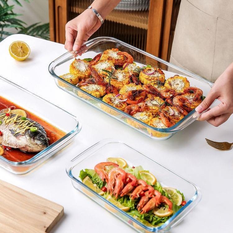 Non stick rectangular baking tray glass baking tray set