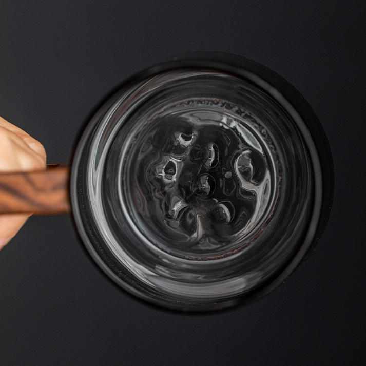 Taza de té de vidrio de borosilicato alto con asa de madera, transparente, gris ahumado, para uso doméstico