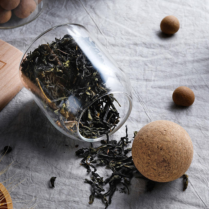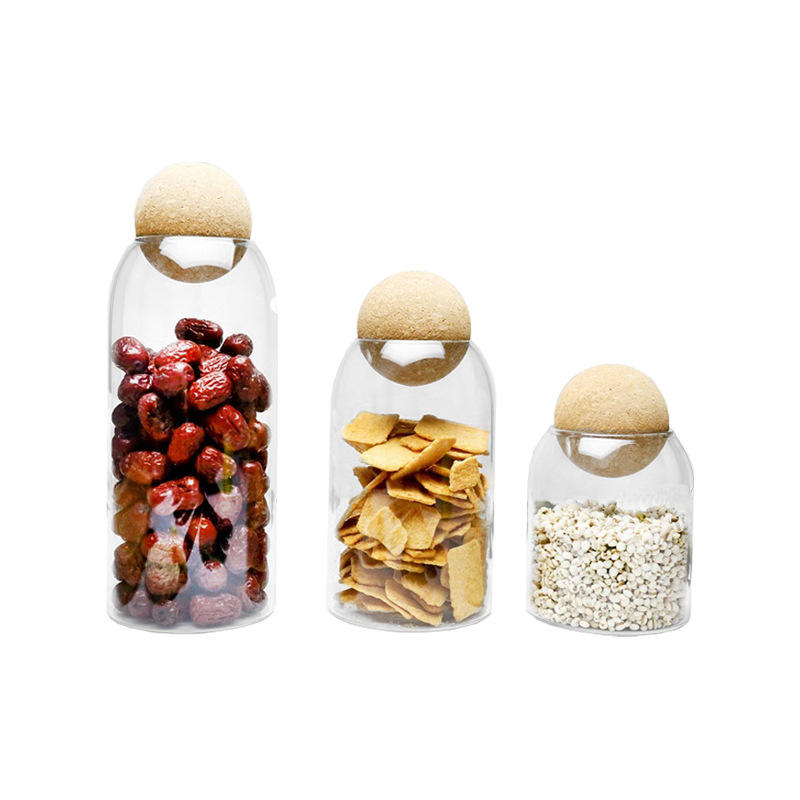 Jarra de almacenamiento de vidrio con tapón de bola de corcho, alta borosilicato, para beber dulces, té, café y granos