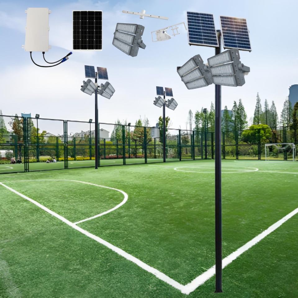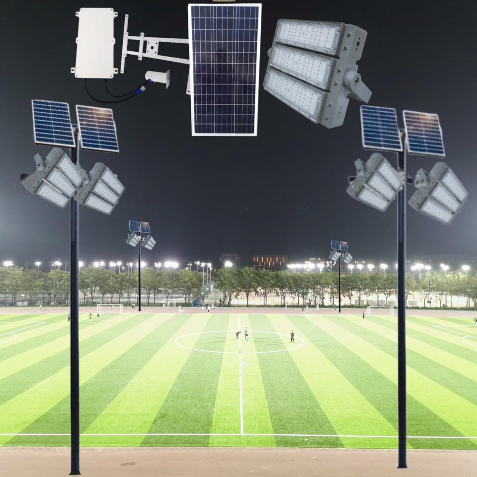 Reflector LED Solar de Alta Luminosidad IP65 a Prueba de Agua para Estadios de Fútbol, Canchas de Bádminton, Gimnasios y Canchas de Tenis con Sensor de Luz