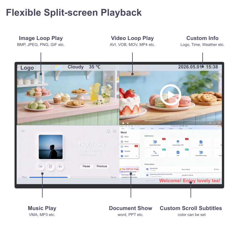 Uso:Publicidad publicar, Aeropuerto, Ascensor, Sala de exposición, Hotel y restaurante suministros, Tienda de venta al por menor, Centro Comercial, -Servicio de negocios, Metro, cartelería digital