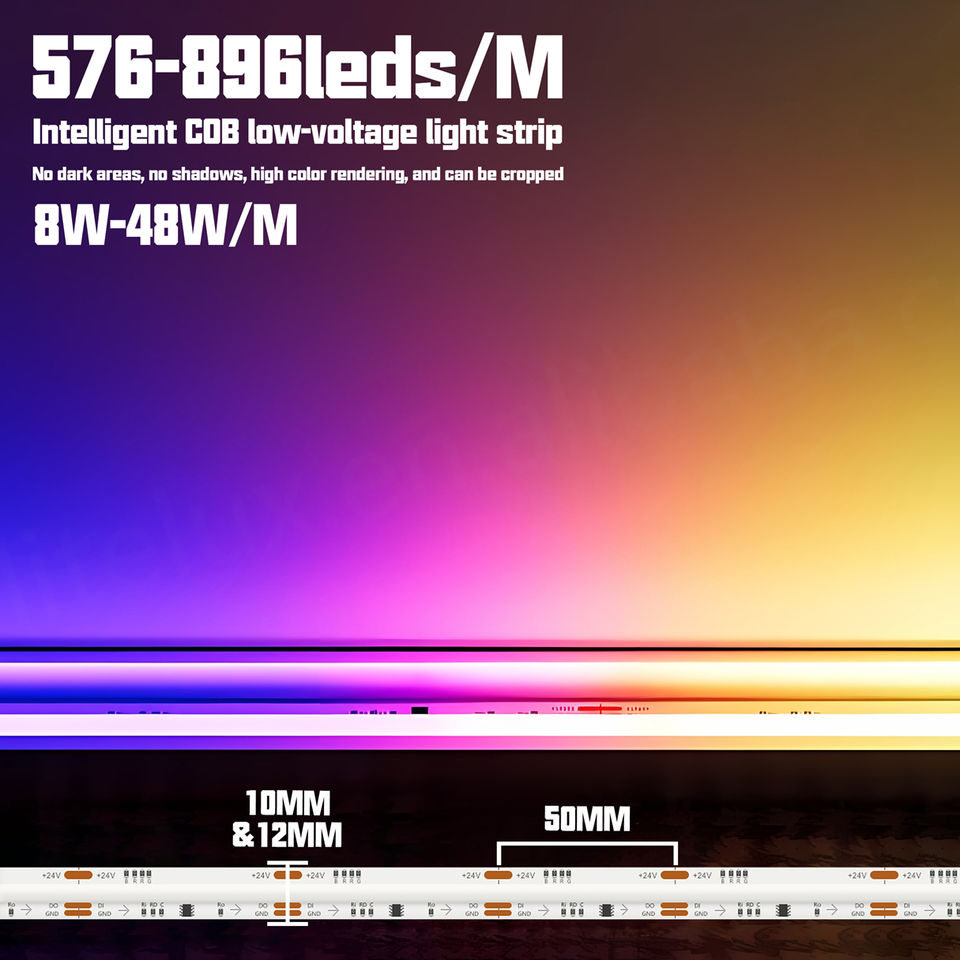 Tira de LED COB de Alta Luminosidad con Color de Ensueño 576D 12/24V, Tira de Luz LED COB RGBIC Direccionable con Color Mágico