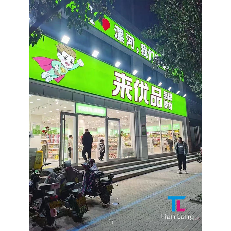 Caja de luz exterior con letras iluminadas