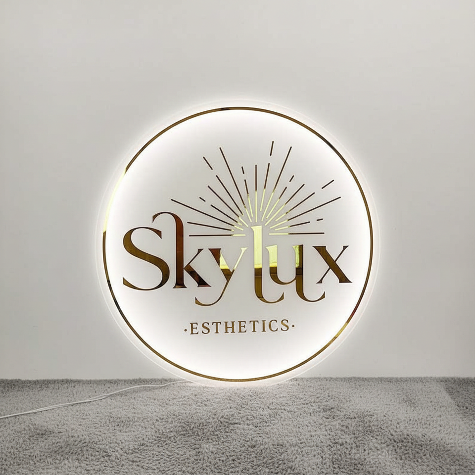 Letrero LED Redondo de Alta Luminosidad con Letras Doradas Brillantes, Tablero de Acrílico Iluminado para Uso Prolongado