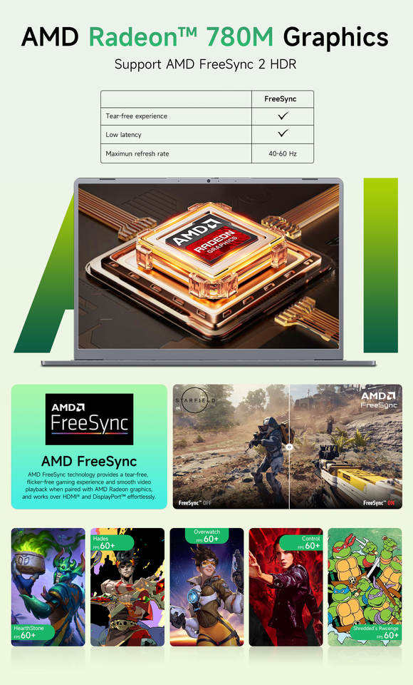 Portátil para Juegos Intel de Alta Capacidad de 15.9 Pulgadas, M D R7-7840Hs, 16 GB DDR5, 512 GB SSD, Teclado Inglés Retroiluminado, 144 Hz