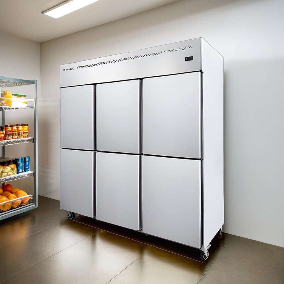 Congelador vertical de 6 puertas de alta capacidad Almacenamiento en frío comercial de acero inoxidable para operaciones de cocina
