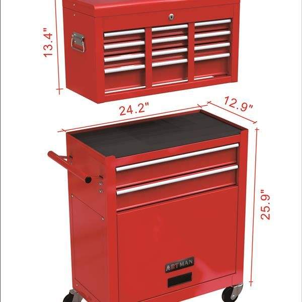 High Capacity 8-Drawer Rolling Tool Chest with Wheels RED-Convenient Tool Storage Cabinet