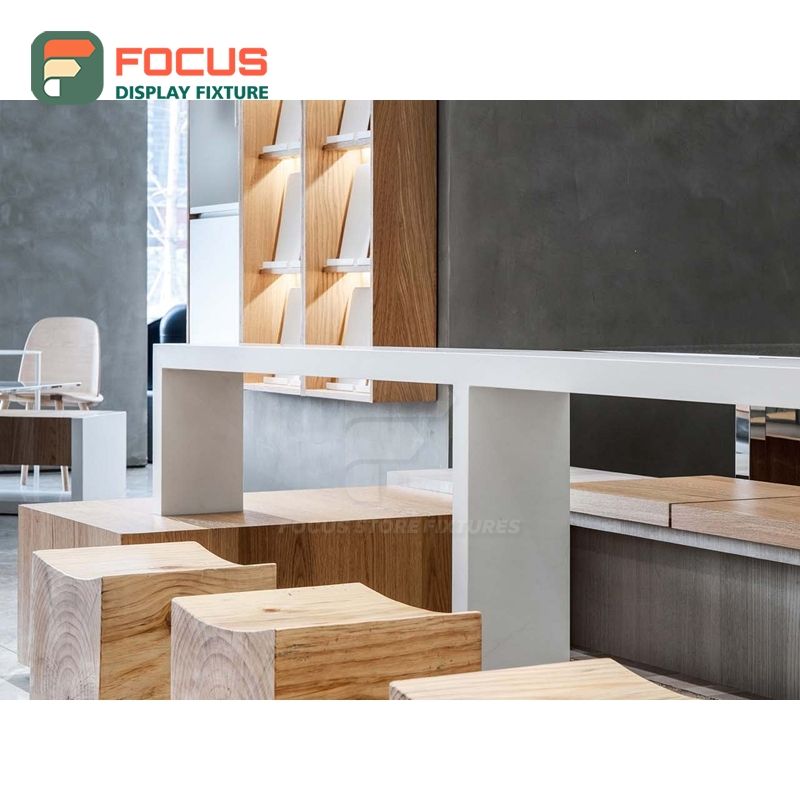 Mostrador de Servicio para Cafetería de Alta Capacidad, Acabado en Madera Laminada, Zona de Servicio para Barista, Mostrador Comercial para Cafetería
