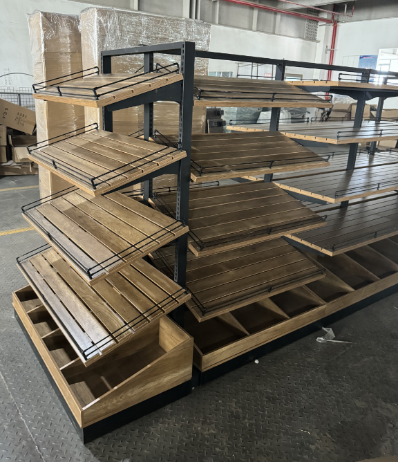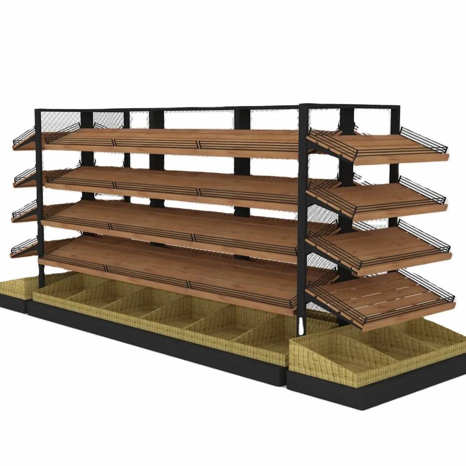 Vitrina de Exhibición de Pan para Supermercado, de Alta Capacidad, Duradera, Ecológica, Estilo Cajón, de Madera y Metal, Independiente y Combinable