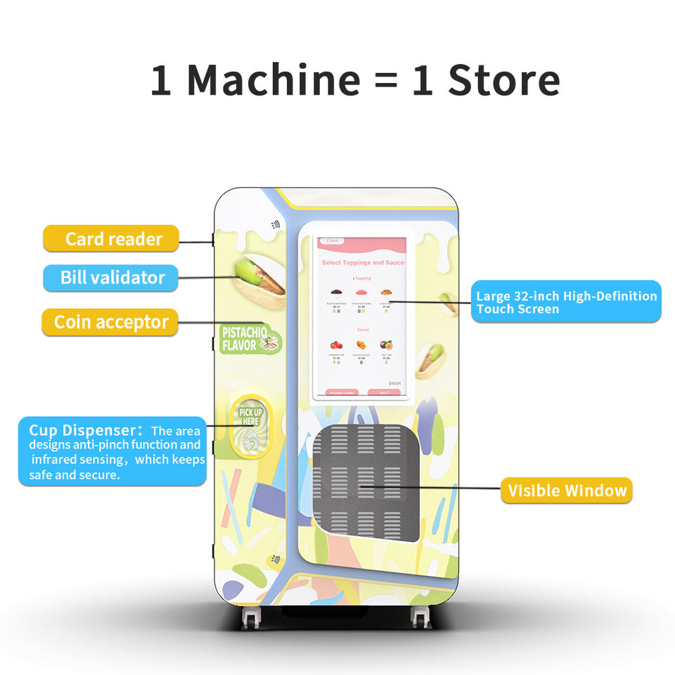Máquina de Helados de Alta Capacidad con Enfriamiento Rápido, Pantalla Táctil Operada con Monedas y SDK Habilitado para Venta Eficiente en Supermercados