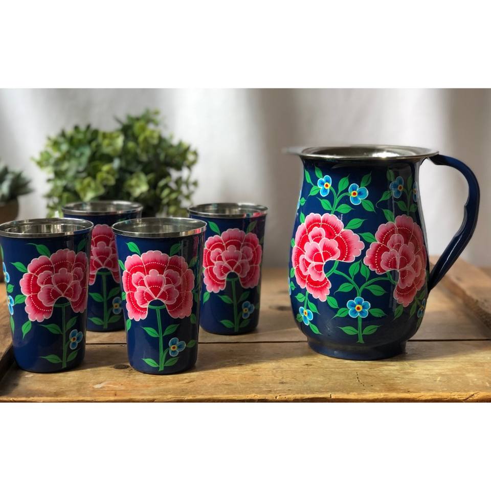 Jarra de metal de alta capacidad, jarra de agua de acero inoxidable con estampado floral, jarra de agua personalizada de la mejor calidad al por mayor