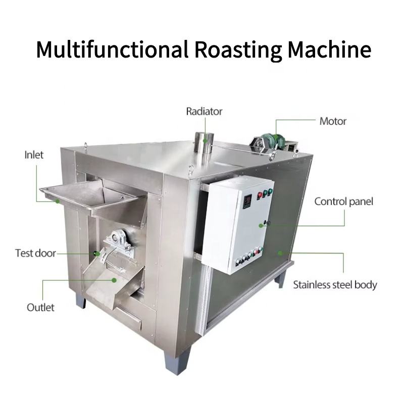 Máquina Automática Multifuncional de Alta Capacidad para Tostar Nueces, Sésamo, Cacahuetes, Castañas, Frutas, Maíz y Trigo, en Acero Inoxidable 304