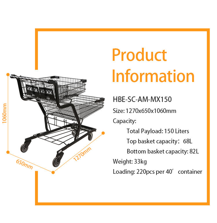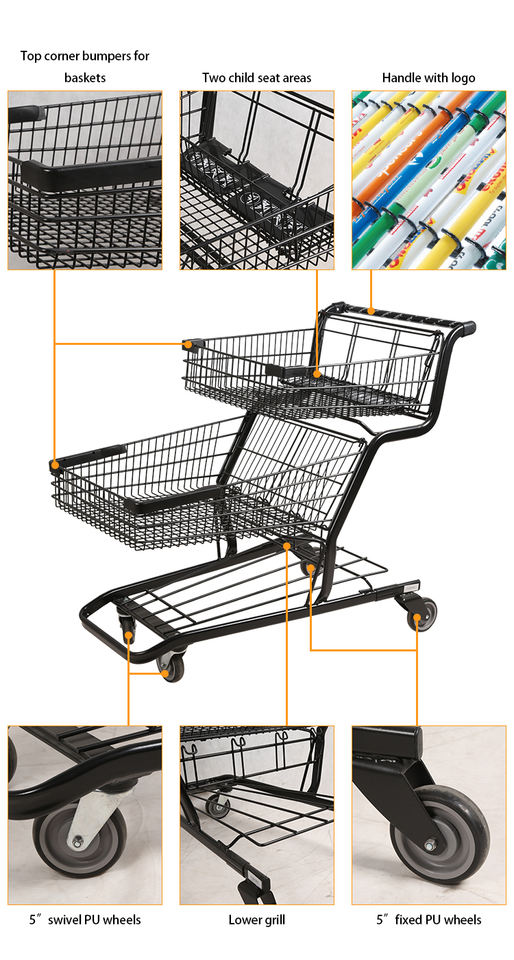 Carrito de Compras de Plástico de Alta Capacidad con Logotipo Personalizado, Movilidad Suave, Premium para Supermercado