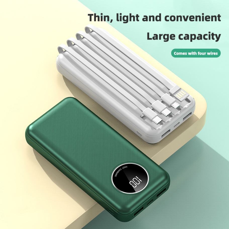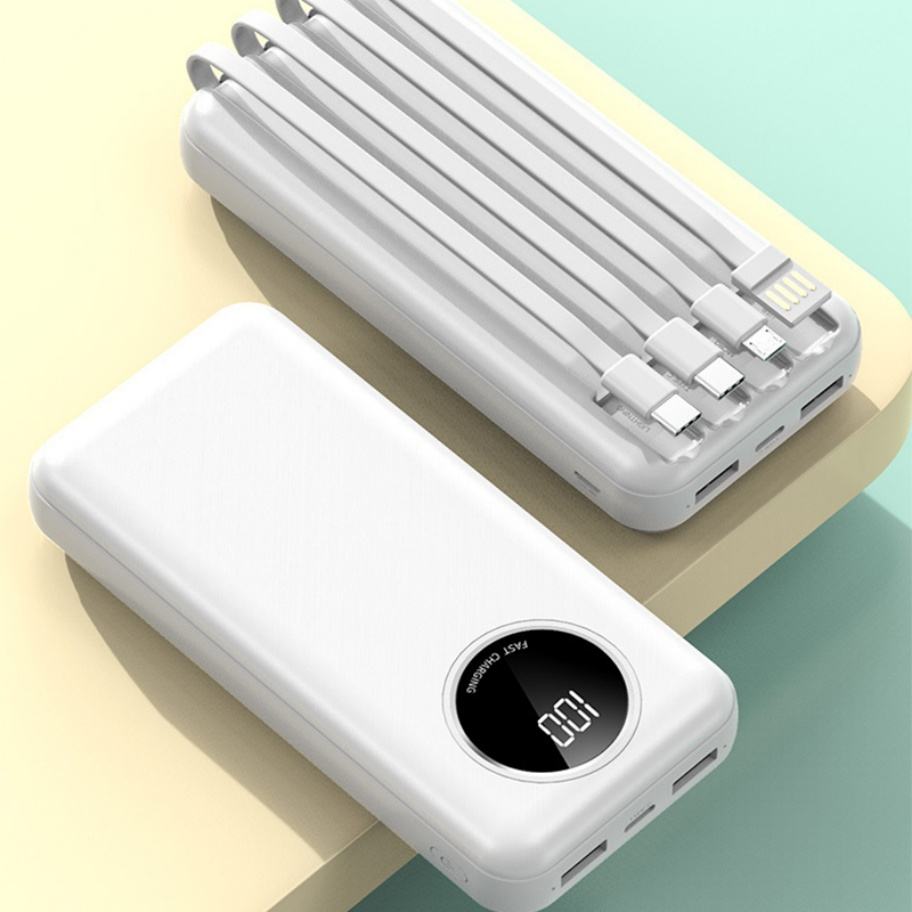 Banco de Energía Portátil de Alta Capacidad, 10000 mAh, 10 W, Doble USB, Cables Integrados, 20000 mAh para Uso en Exteriores