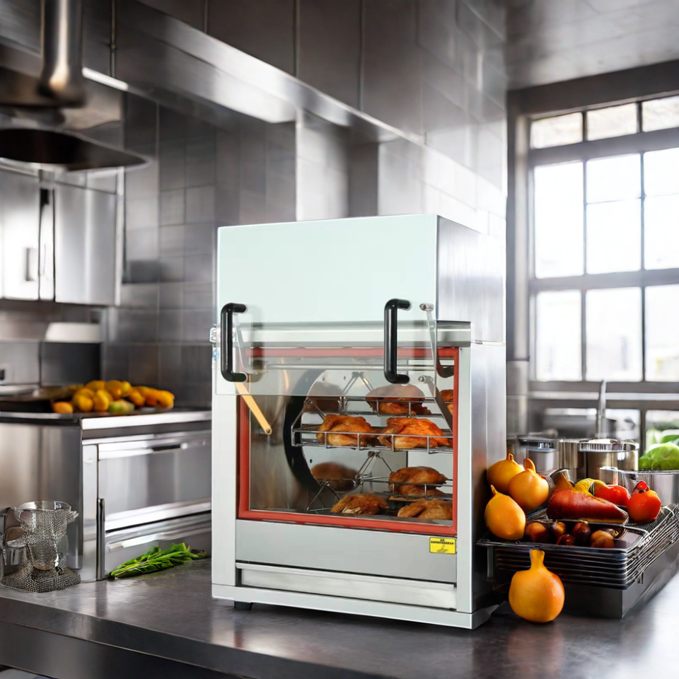 Horno de Pollo Comercial de Acero Inoxidable de Alta Capacidad, Rotación de 360 Grados, Horno de Barbacoa a Gas, Motor Confiable