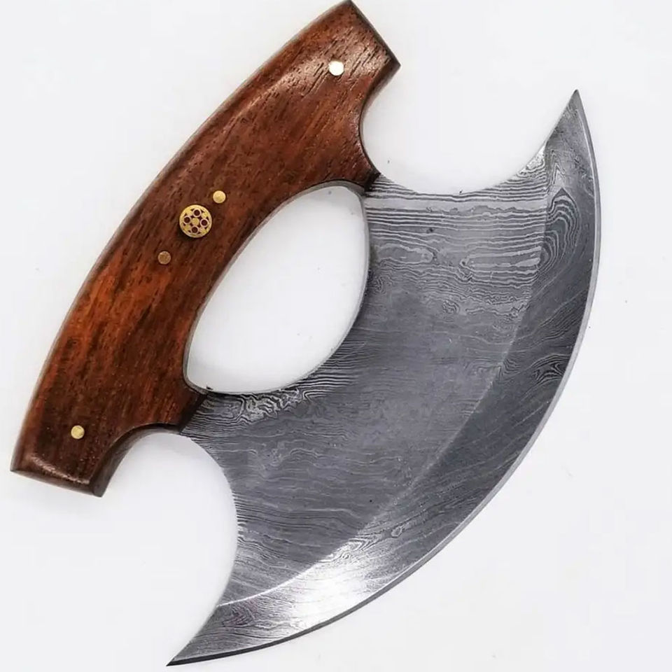 Cuchillo Ulu de acero damasco forjado a mano de alto carbono con mango de madera personalizado al por mayor ODM herramienta de grado industrial hecha a mano