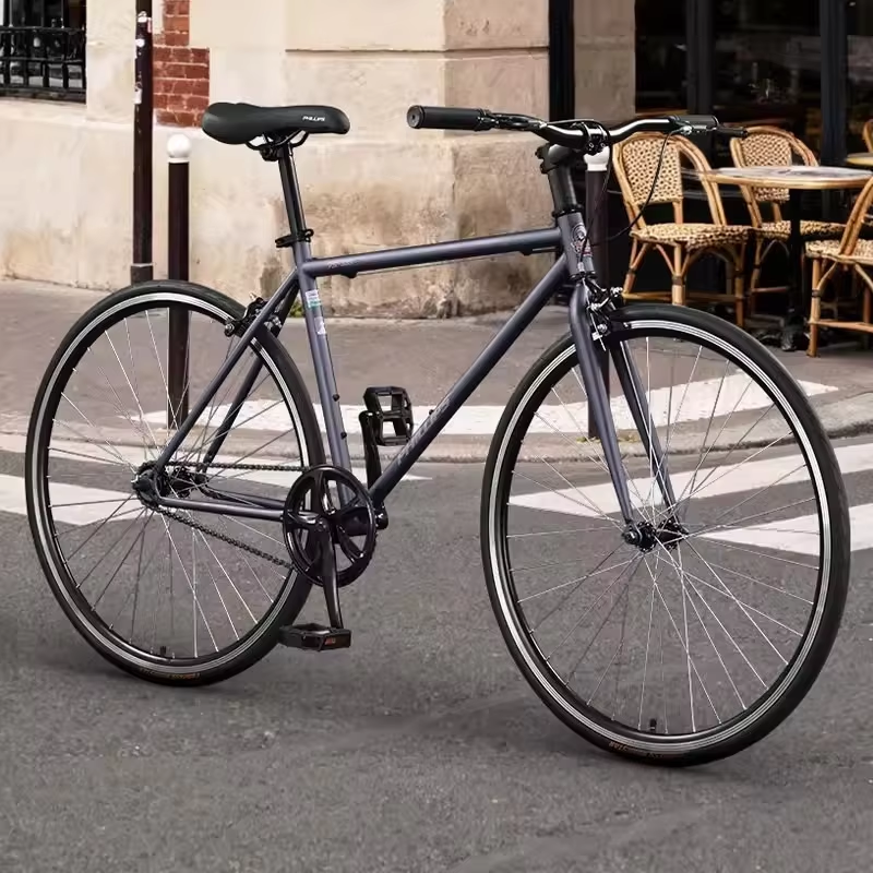 Bicicleta de Carretera de Una Velocidad con Horquilla de Resorte Retro de Acero de Alto Carbono y Frenos de Disco para Adultos, para Desplazamientos Diarios
