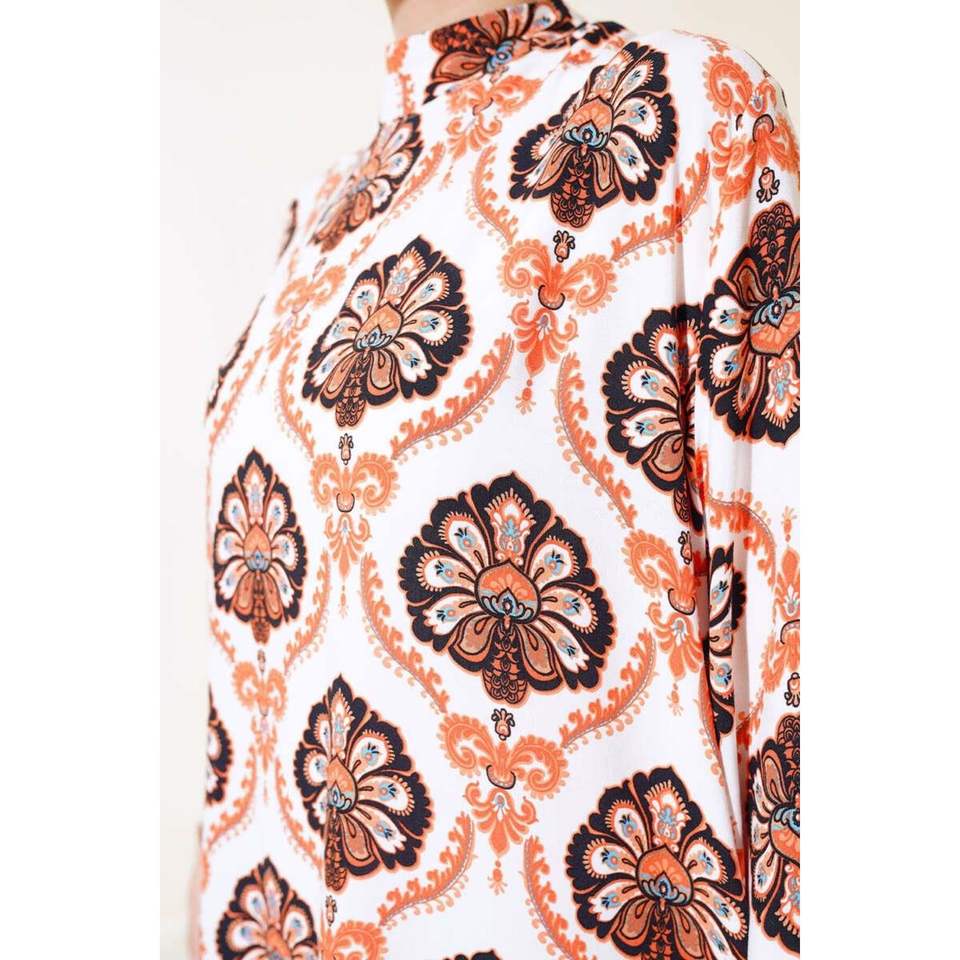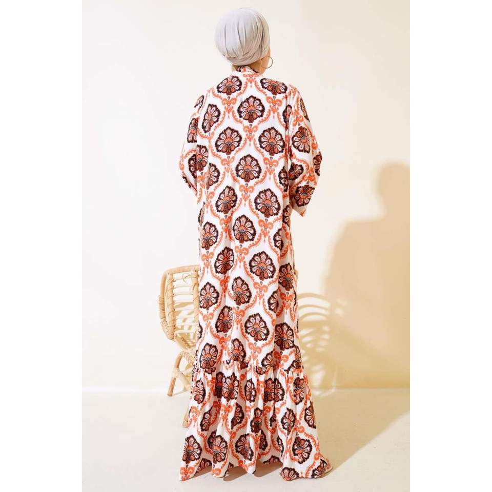 Vestido Cuello Alto Estampado Floral Capas Naranja