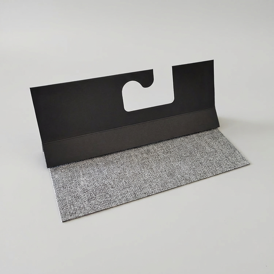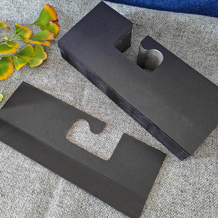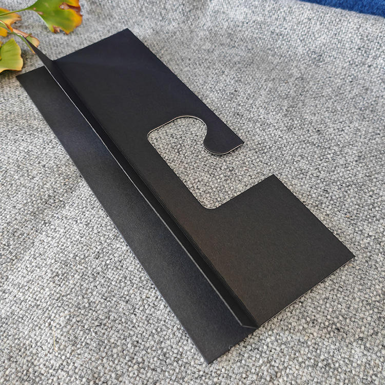 EN STOCK: Colgadores de cartón negro perforados para muestras de tela, tarjetas colgantes, ganchos para tela, colgadores de papel, tarjetas de muestra de tela con LOGO personalizado