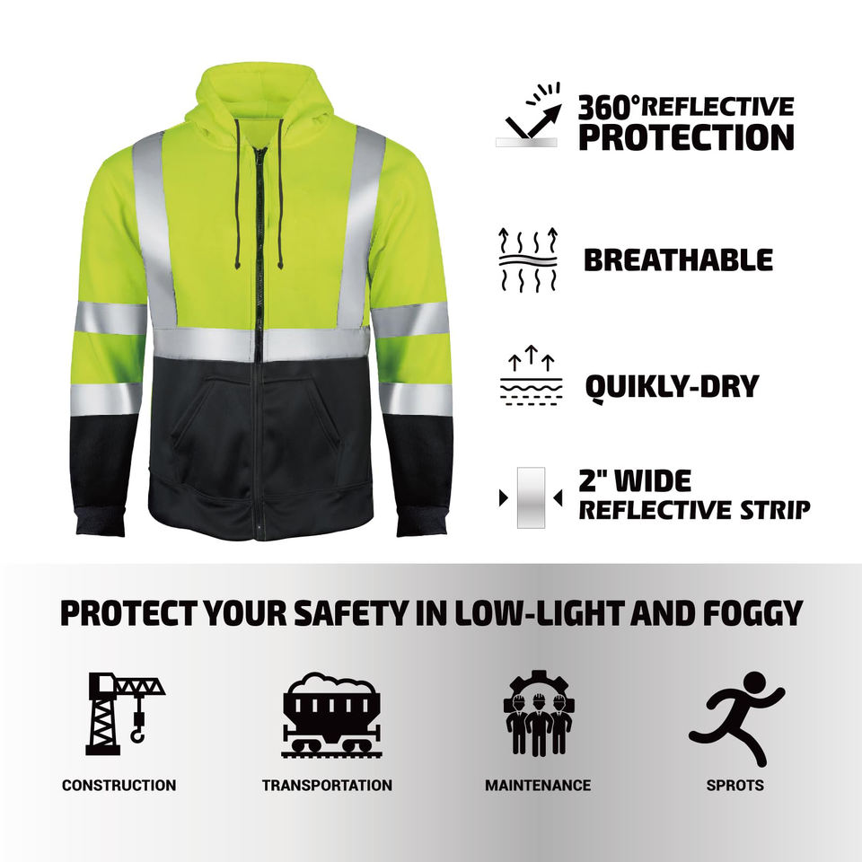 Chaqueta de Seguridad de Alto Contraste con Franjas Reflectantes, Diseño de Cierre Completo, Resistente a la Suciedad, Ropa de Trabajo Industrial, Prendas de Seguridad