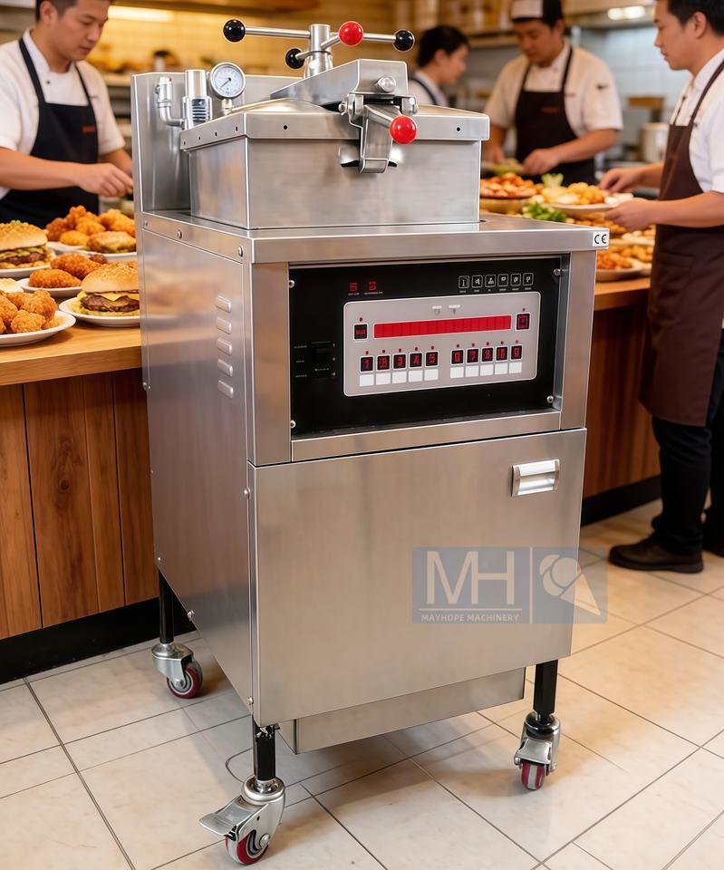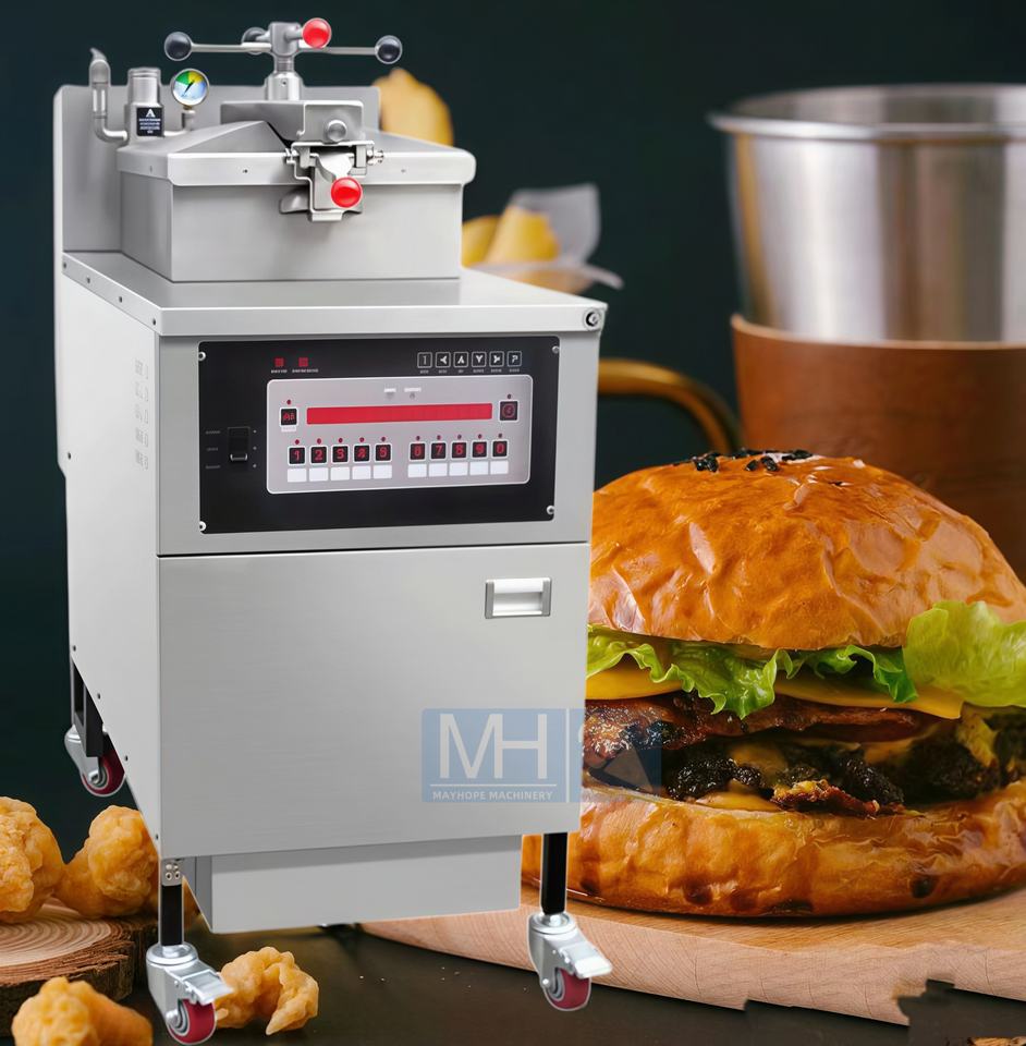 Freidora a Presión Comercial de Gas para Pollo, Estilo Panel, de Alto Rendimiento, 25L, con Sistema de Aceite