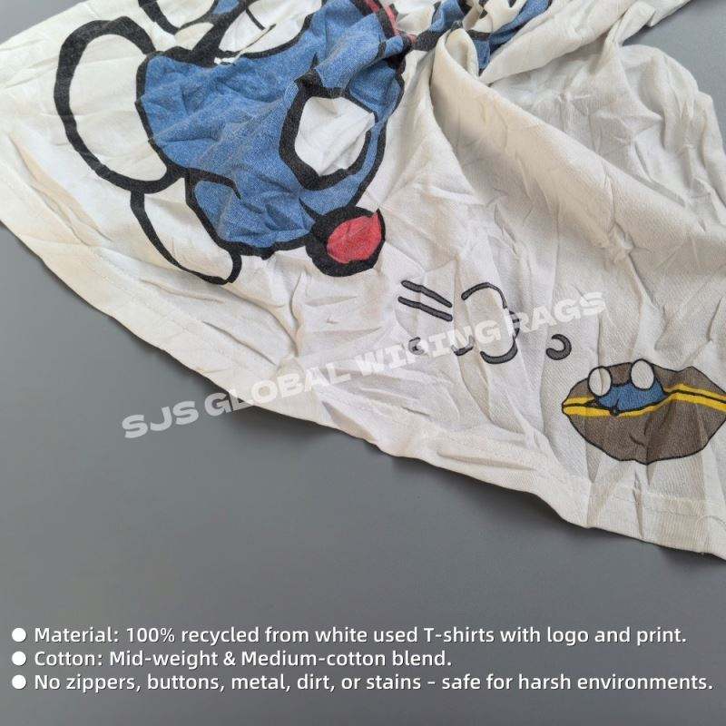 Trapos de Limpieza Industriales de Algodón de Alta Absorción, Trapos Blancos Impresos de Camiseta Reciclados para Uso Industrial