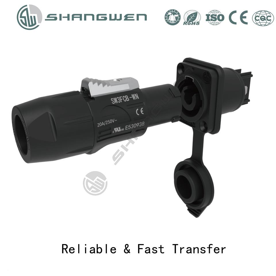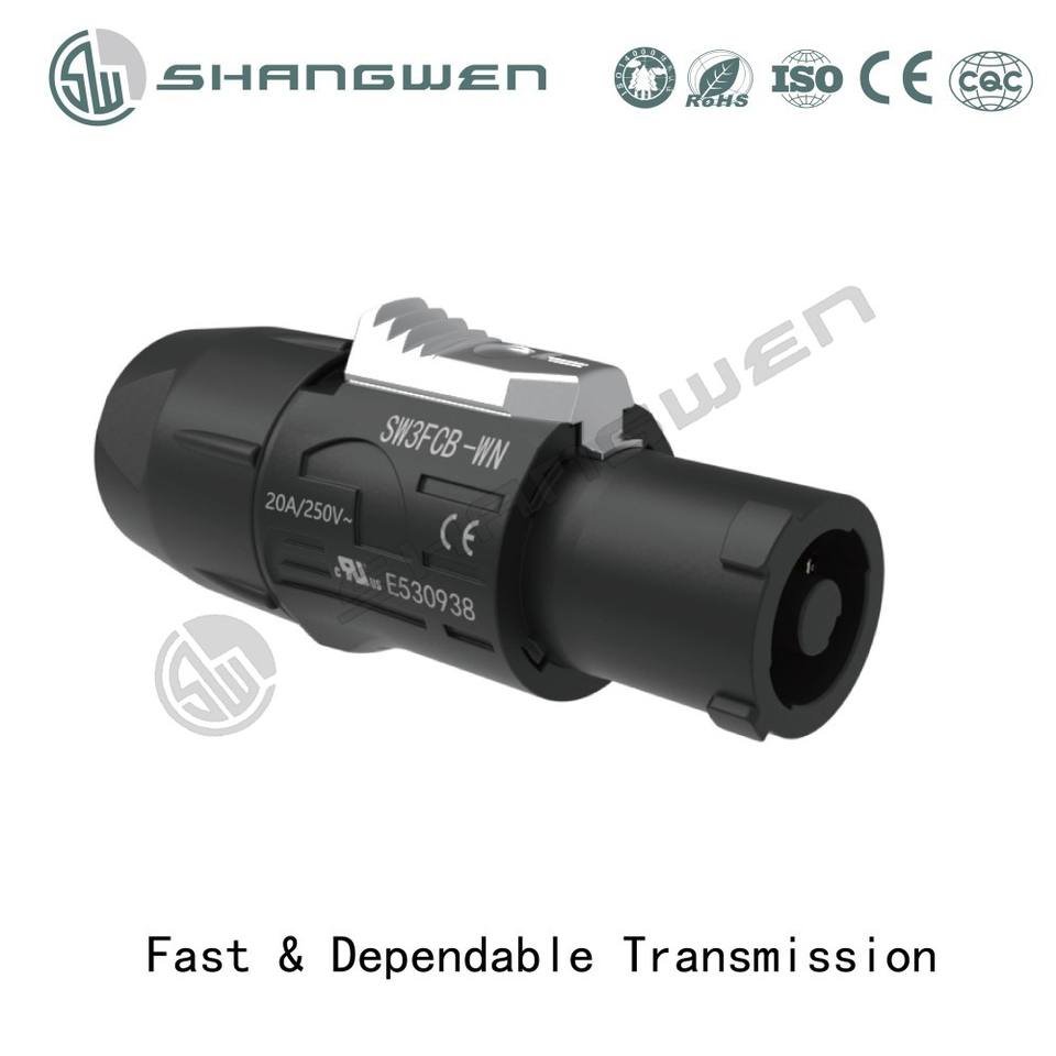 Cable de alimentación LED de 3 pines de alta capacidad de corriente Triple carcasa negra IP65 exterior 3 conector macho impermeable enchufe 20A 250V aleación hecha