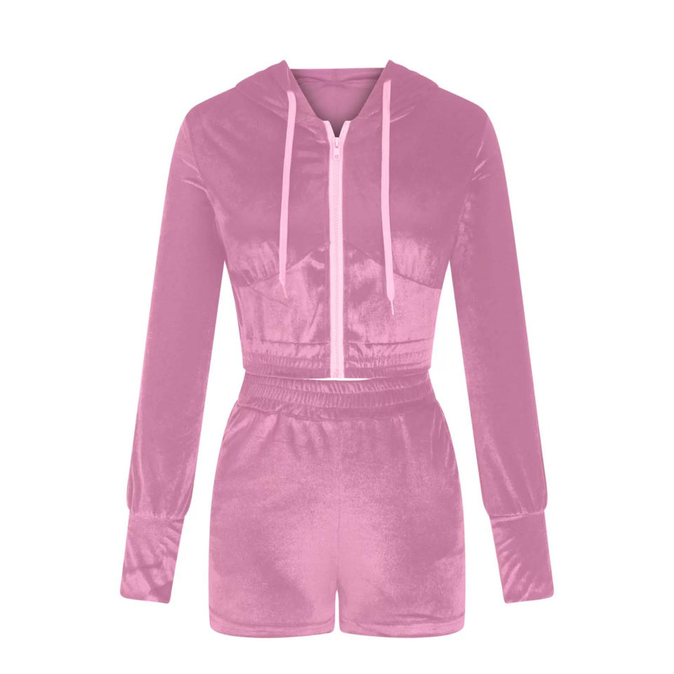 Conjunto de chándal de dos piezas para mujer, de terciopelo y encaje, con diseño vintage de plumas, transpirable, con sudadera con cremallera y pantalones cortos, de corte personalizado y ajustado.