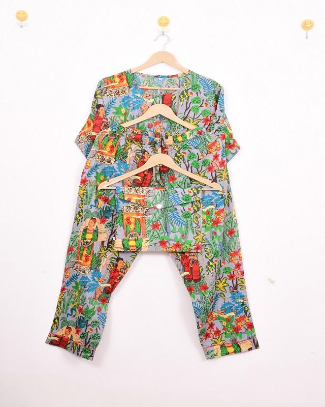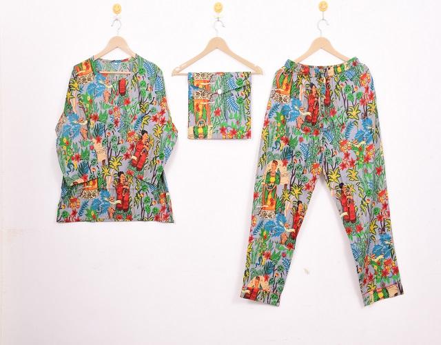 Conjunto de Pijama para Mujer con Cuello Redondo, Diseño Étnico, Estampado a Mano, para Piel Sensible, Precio al por Mayor