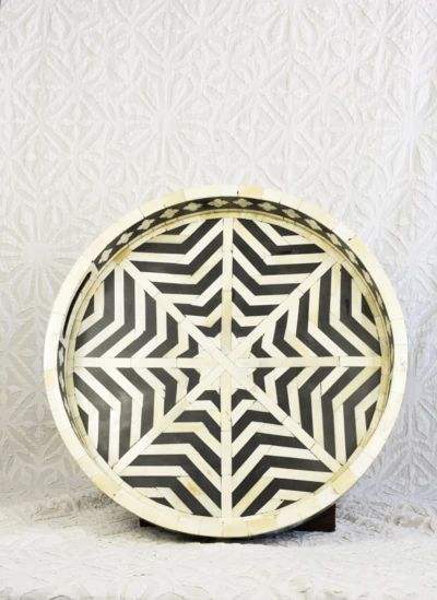Bandeja de diseño con incrustaciones de hueso de alta demanda, bandeja de servir colorida con incrustaciones de hueso y asa, bandejas decorativas a precio de fábrica al por mayor