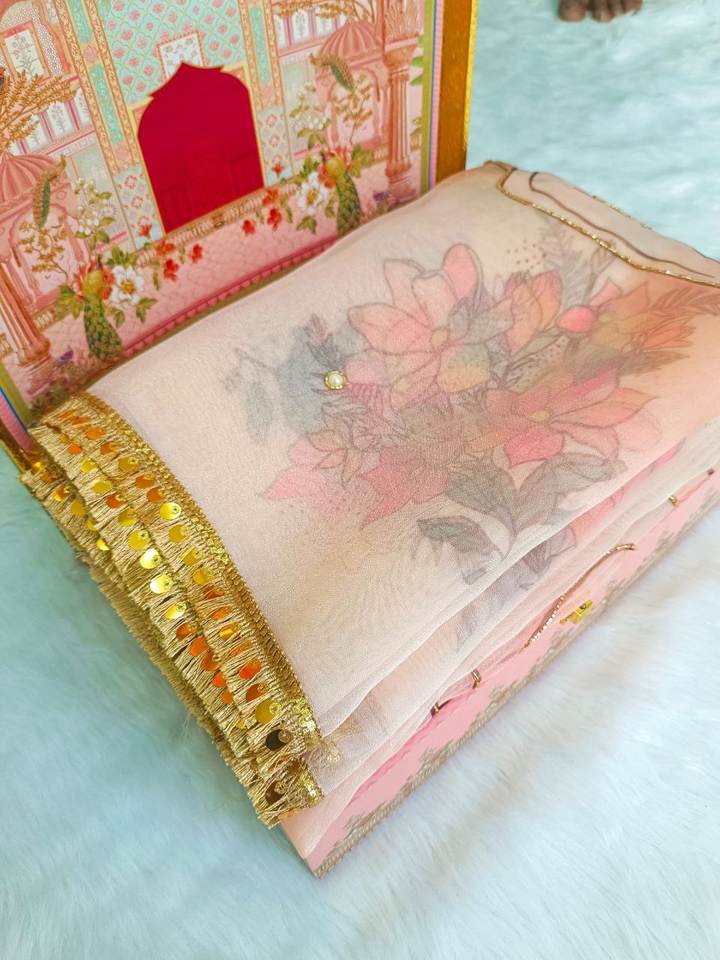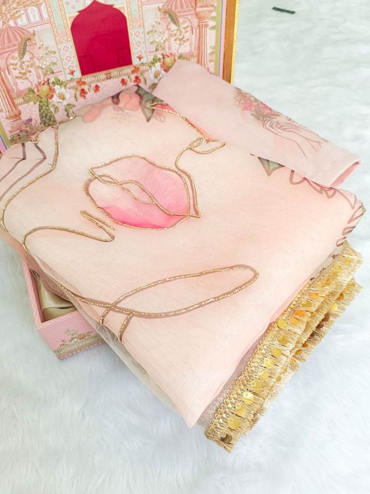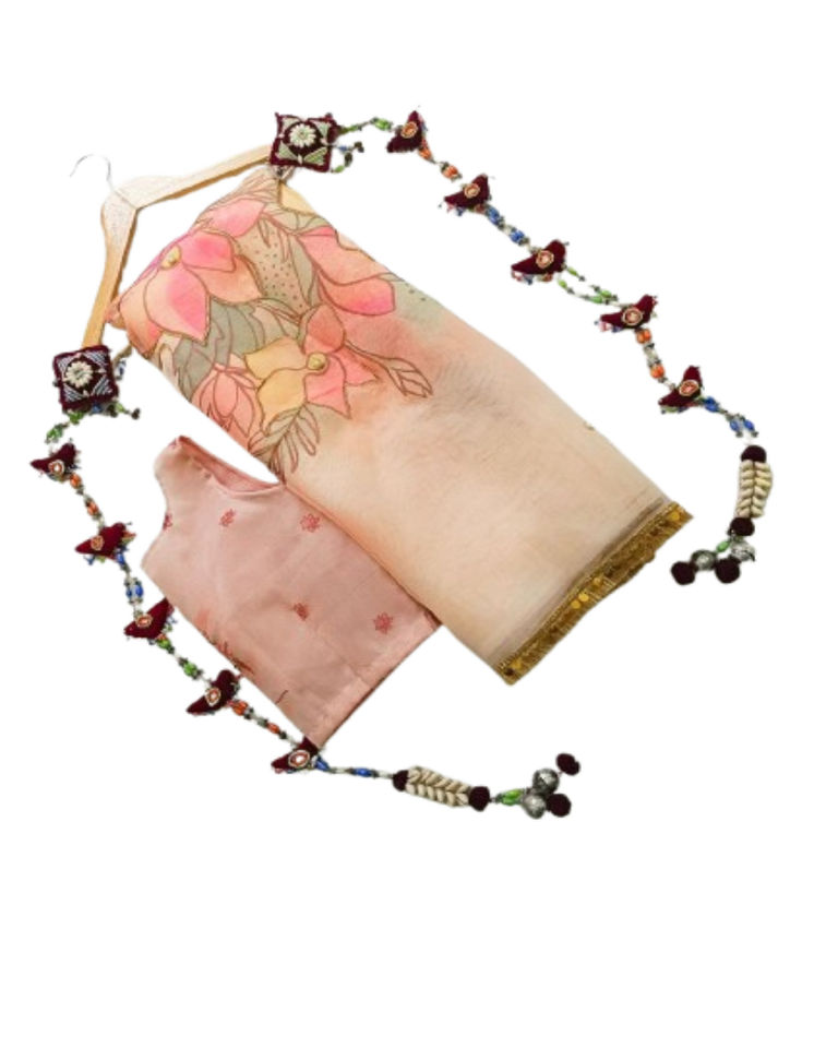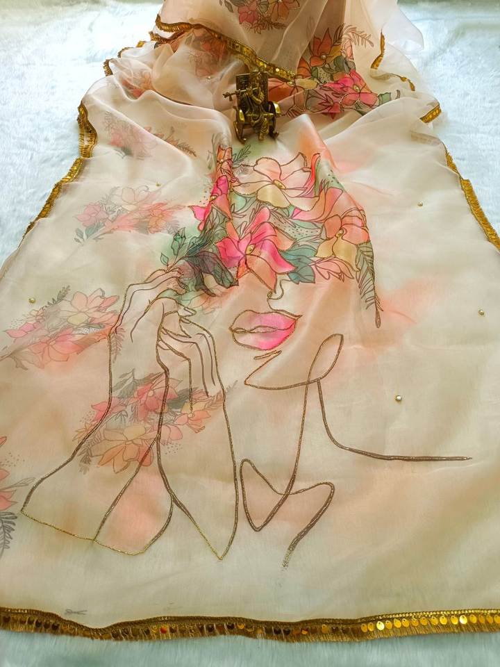 Tejido:Sari de organza puro suave trabajo hecho a mano