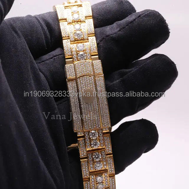 Reloj de pulsera analógico de acero inoxidable de 41mm de lujo para hombre, ventana de cristal de diamante Moissanite, automático de alta calidad para estilo Hip Hop