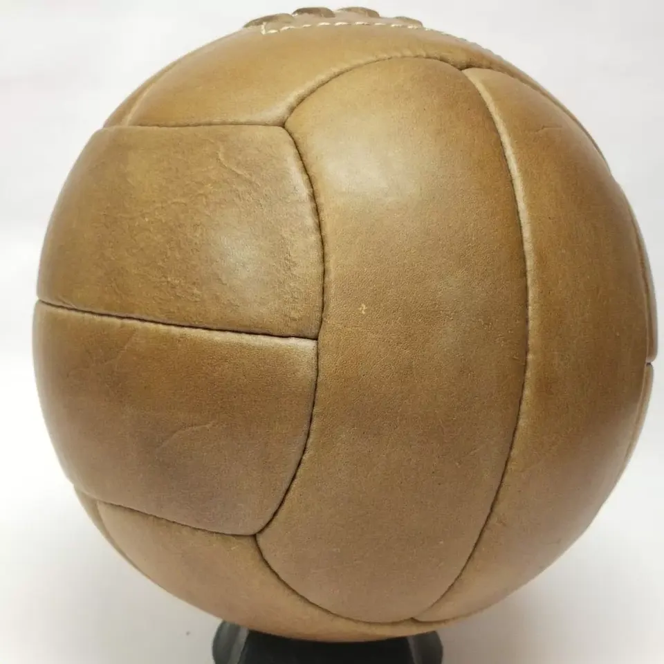 Balón de fútbol de 12 paneles de cuero vintage de alta demanda y balón de fútbol con 6 agujeros de encaje, balón antiguo, categoría de producto Popular