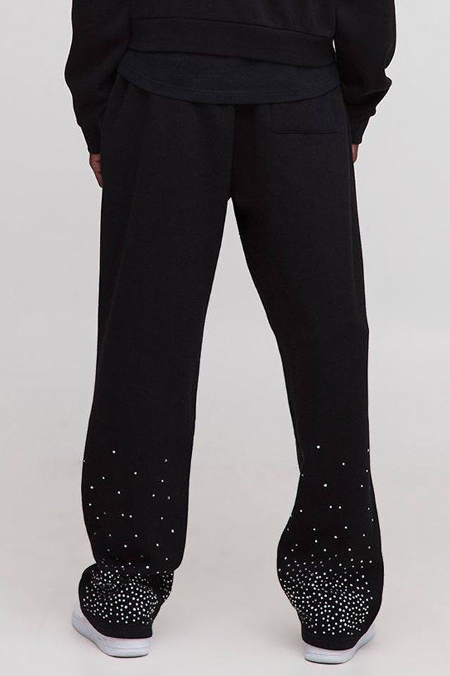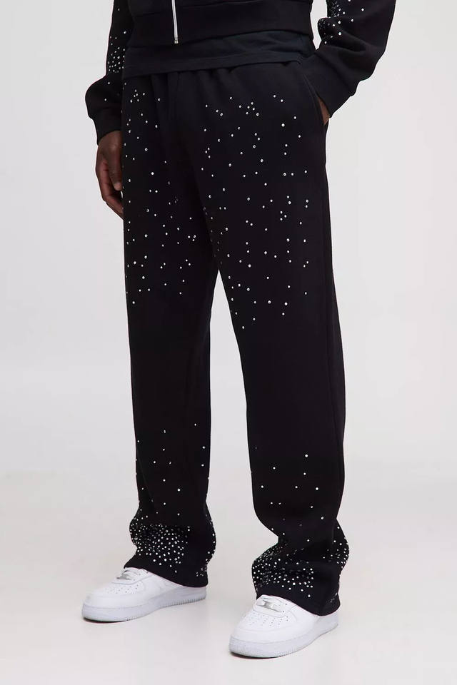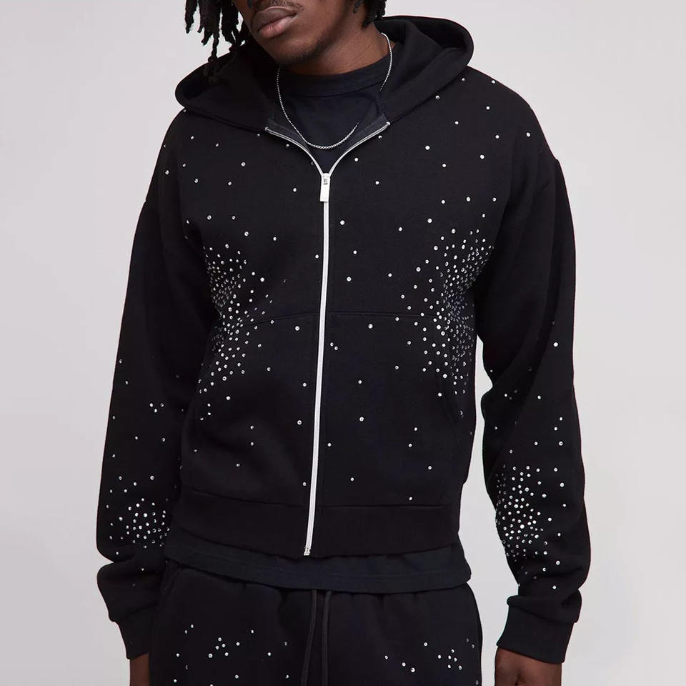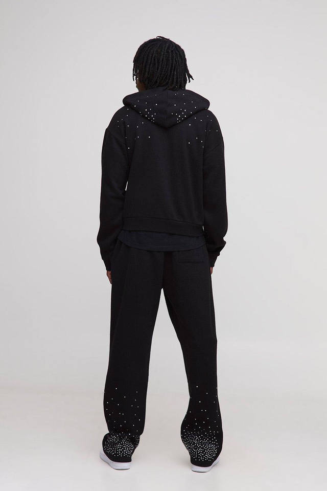 Conjunto Deportivo de Hombre con Capucha y Pantalones Jogger, Negro, con Pedrería, Transpirable, de Algodón, para Hombre