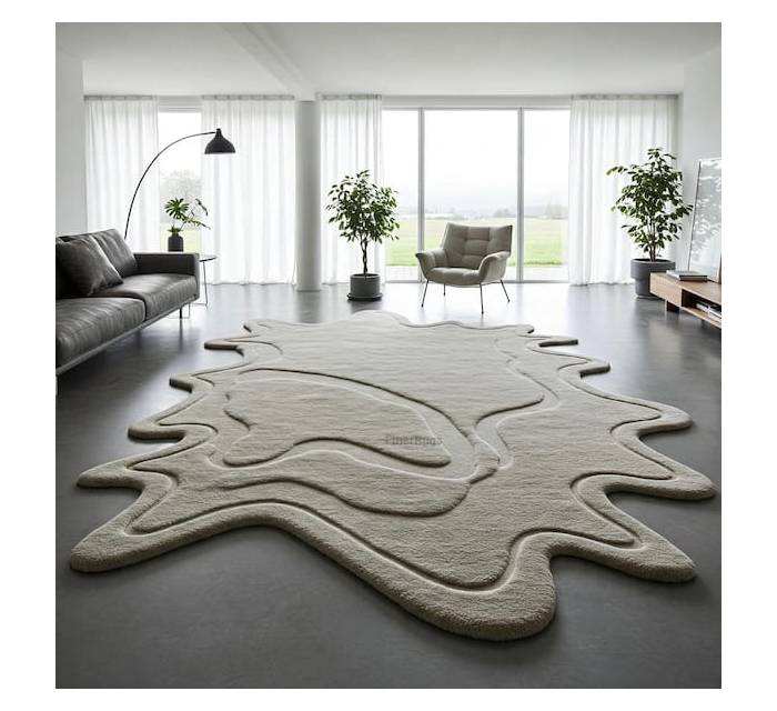 Alfombra de Lana de Alta Densidad con Diseño 3D en Capas, Absorbente de Sonido, Forma Irregular Abstracta, Alfombra Moderna para Decoración del Hogar