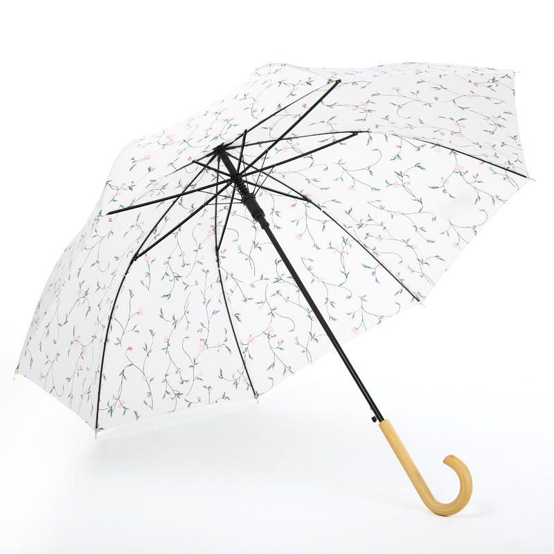 Full Printing Elegant Wooden Handle Straight Umbrella