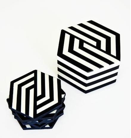 Posavasos de Diseño Clásico con Incrustaciones de Hueso, Ecológicos, Base de Madera Hecha a Mano, Motivos Étnicos, Juego de 6, Nogal