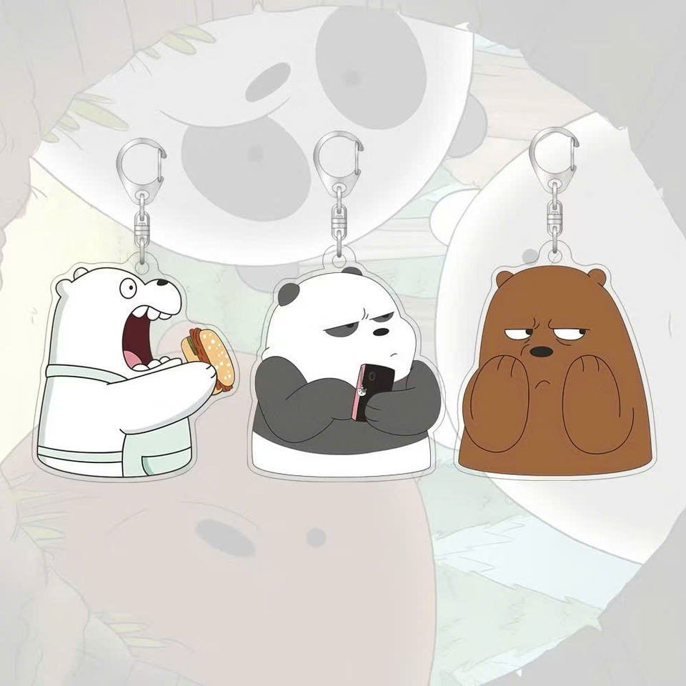 Juguetes de llavero de anime acrílico de alta durabilidad personalizables con 3 osos dulces