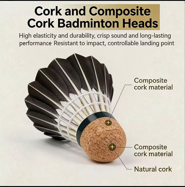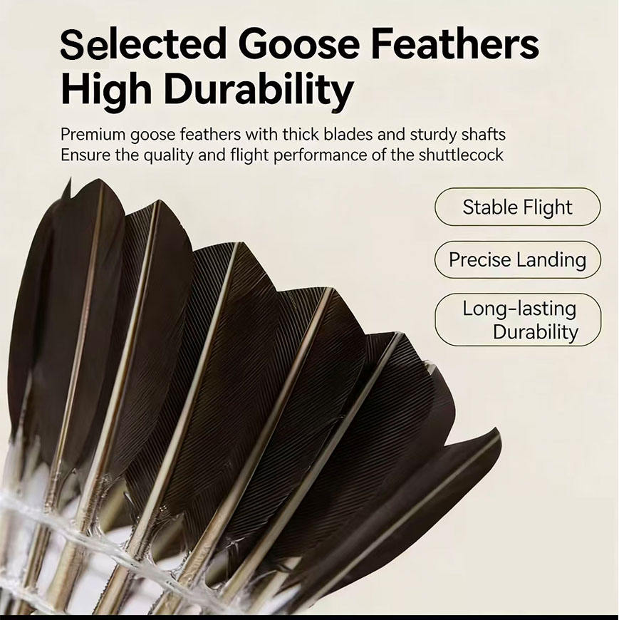 Volantes de Bádminton de Pluma Negra de Alta Durabilidad, 12 Unidades, Pluma de Ganso, Velocidad 76/77, Cabeza de Corcho para Entrenamiento en Interiores y Exteriores