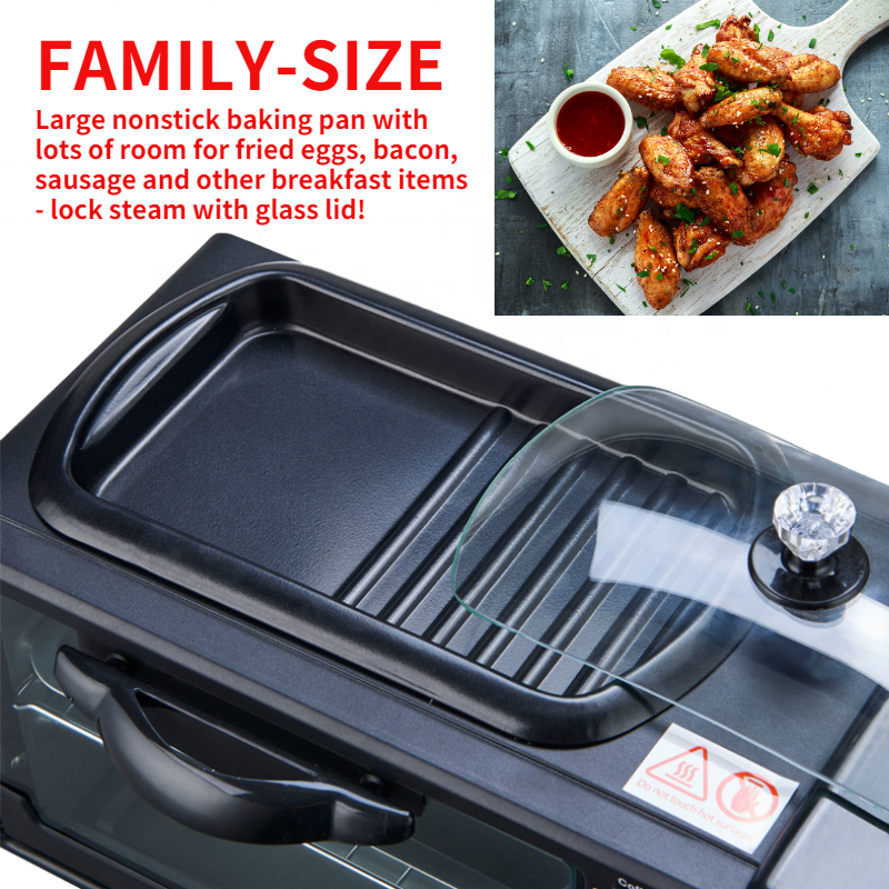 Máquina Eléctrica Multifuncional de Alta Eficiencia 3 en 1 para Desayuno, Mini Microondas, Parrilla para Sándwiches y Pan