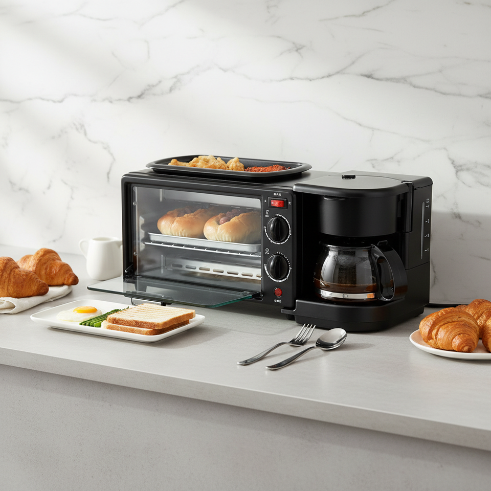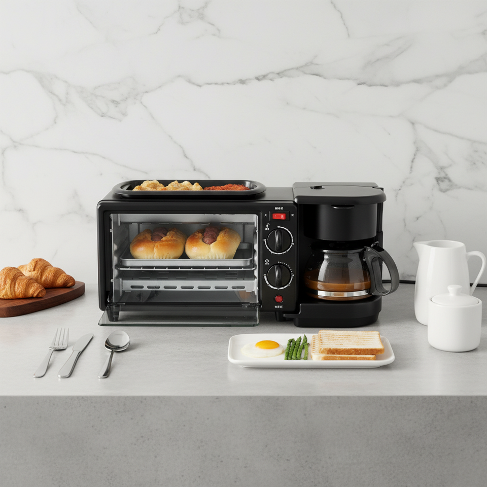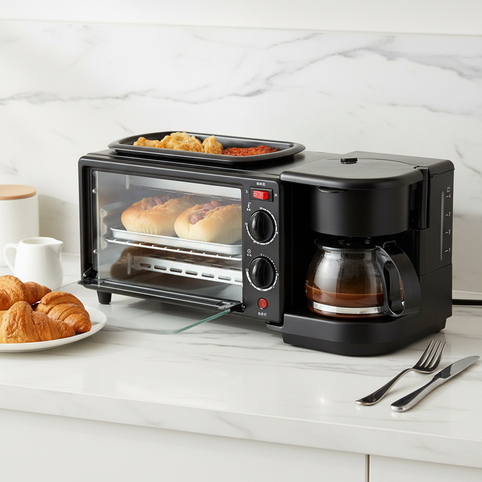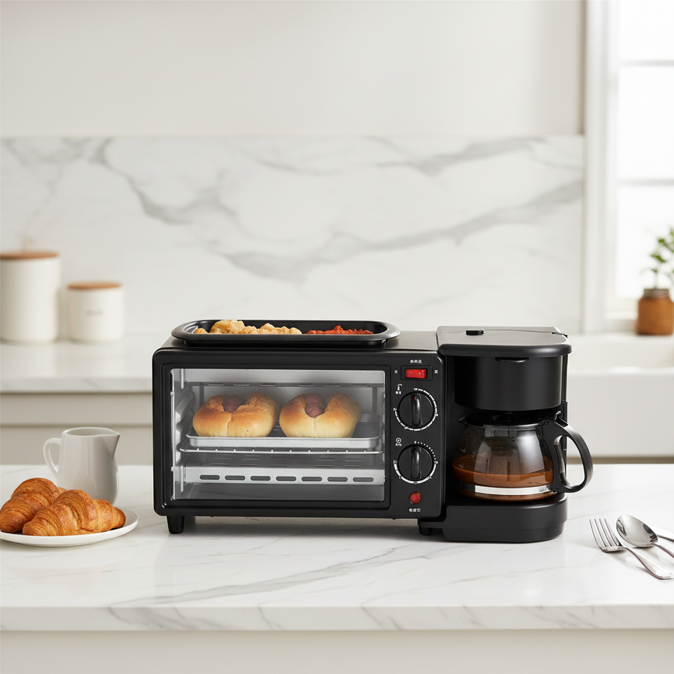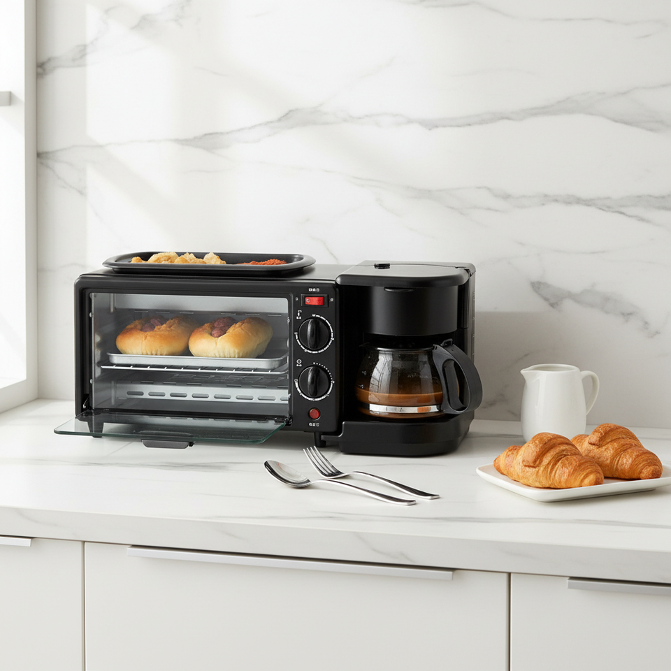 Horno Microondas Eléctrico de Alta Eficiencia, Mini Grill Multifuncional para Sándwiches y Pan, Máquina para Hacer Desayunos 3 en 1