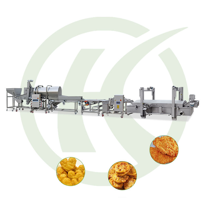 Línea de producción de recubrimiento y freír bolas de camarón pastel de pescado Nugget de pollo de acero inoxidable de alta eficiencia