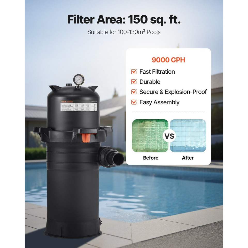 Válvula de Filtro de Cartucho para Piscina de Alta Eficiencia, 150 Pies Cuadrados, 9000 GPH, Limpieza y Filtración para Spa