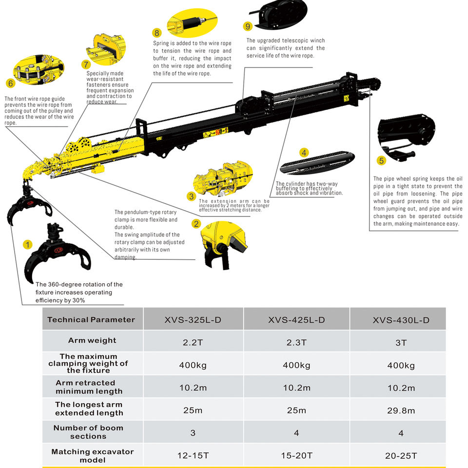 Nombre del producto:Accesorio para Excavadora Xuvol WYJ-325L Brazo Telescópico