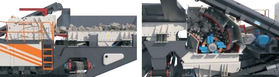 Los componentes principales.:Tolva de Alimentación, Placas de Trituración, Mandíbula Fija, Mandíbula oscilante, Eje Excéntrico, Placa de Palanca, Cuña de Ajuste, Motor de Tracción, Volante de inercia