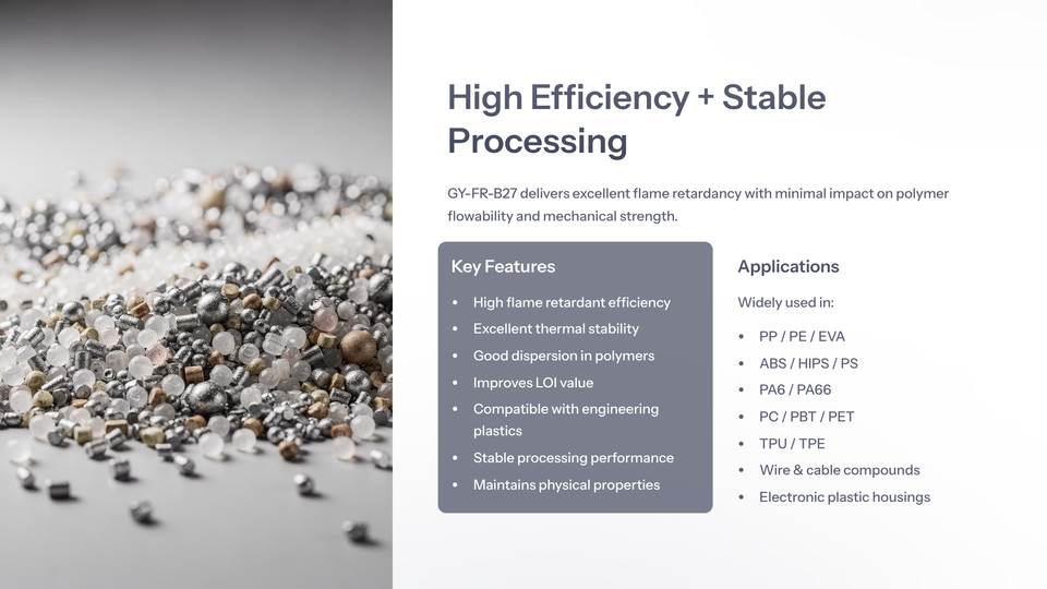 Polvo Retardante de Llama de Alta Eficiencia para Resina PP PVC EVA TPU PA PET | GY-FR-B27